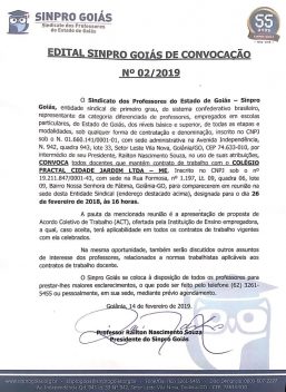 O Sindicato dos Professores do Estado de Goiás (Sinpro Goiás) convoca a todos os docentes que mantém contato com o Colégio Fractal Cidade Jardim para